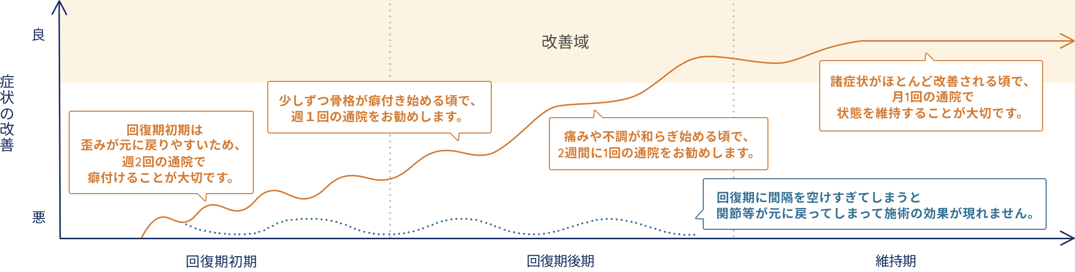 途中で通院をやめてしまえば、せっかくの改善効果も持続しづらくなってしまいます。